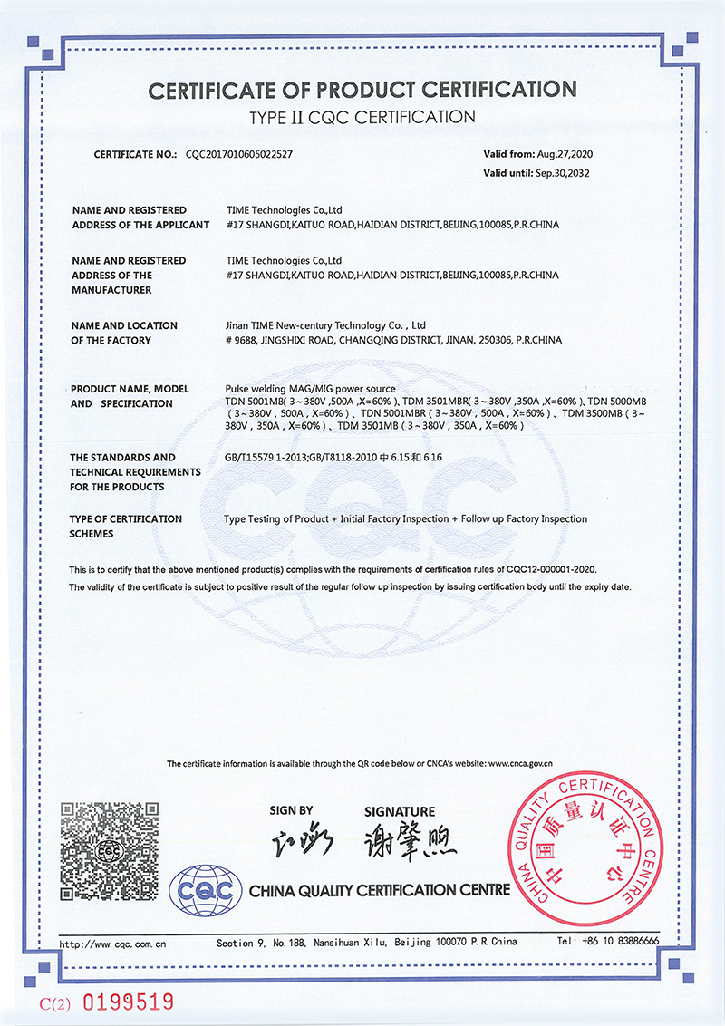 CQC certification [pulse MAG/MIG TDN Series]