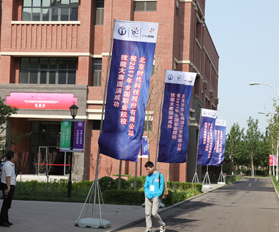 時(shí)代宣傳旗飄揚在大賽演示中心