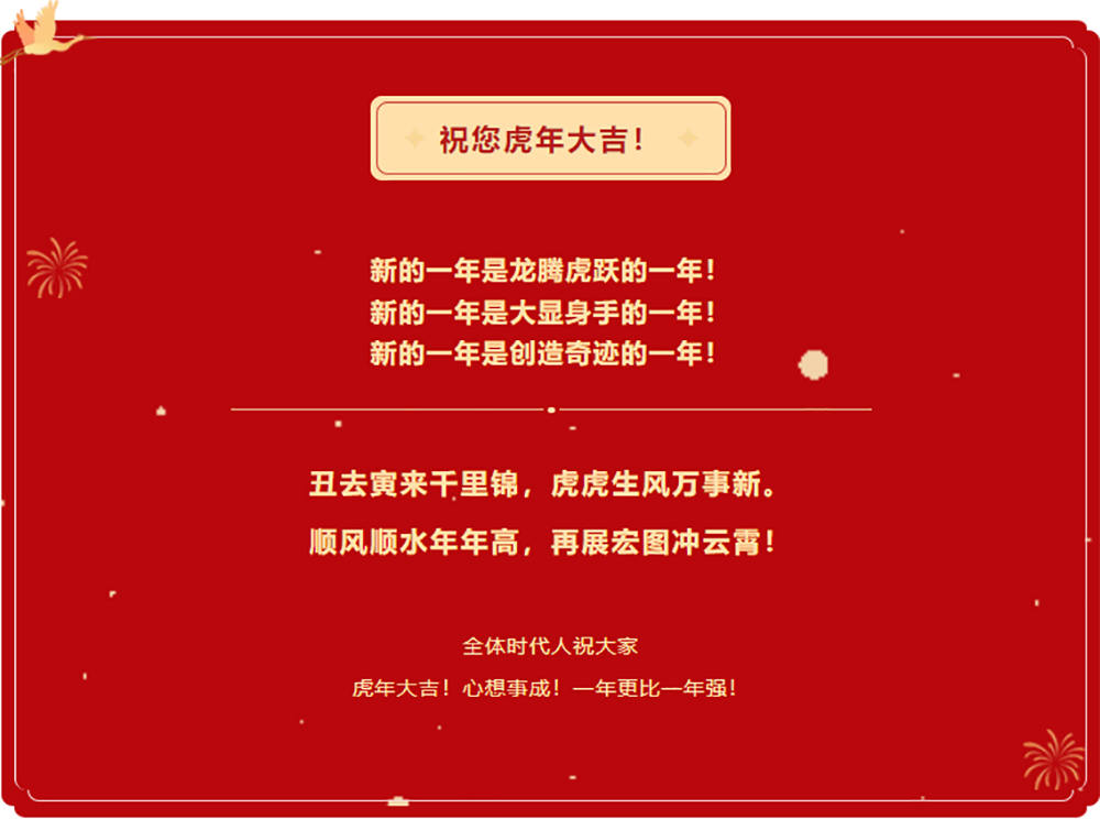 我們懷著(zhù)熱切的渴望迎接虎虎生風(fēng)的新的一年。新年的發(fā)展藍圖已經(jīng)鋪開(kāi),全體時(shí)代人將躍躍欲試奔赴新的征程!新的戰場(chǎng)!