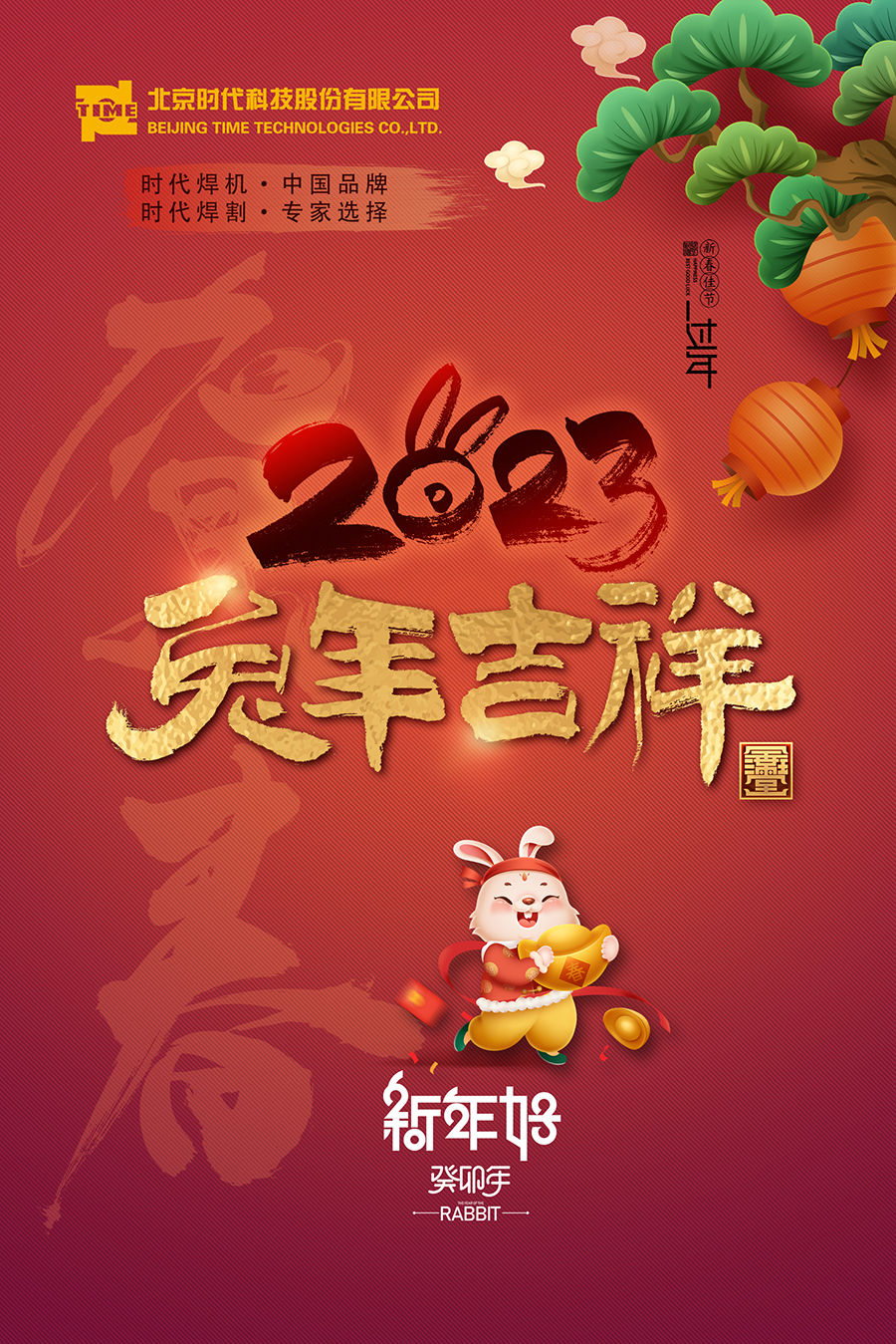在新春佳節到來(lái)之際,全體時(shí)代人心懷感恩向所有時(shí)代焊機的新、老朋友致以最誠摯的新年問(wèn)候!祝愿大家新春快樂(lè )!萬(wàn)事如意!身體健康!闔家歡樂(lè )!同時(shí)祝愿所有朋友在癸卯年(2023年)順風(fēng)順水、步步登高、豪氣勃發(fā)、大展宏圖!